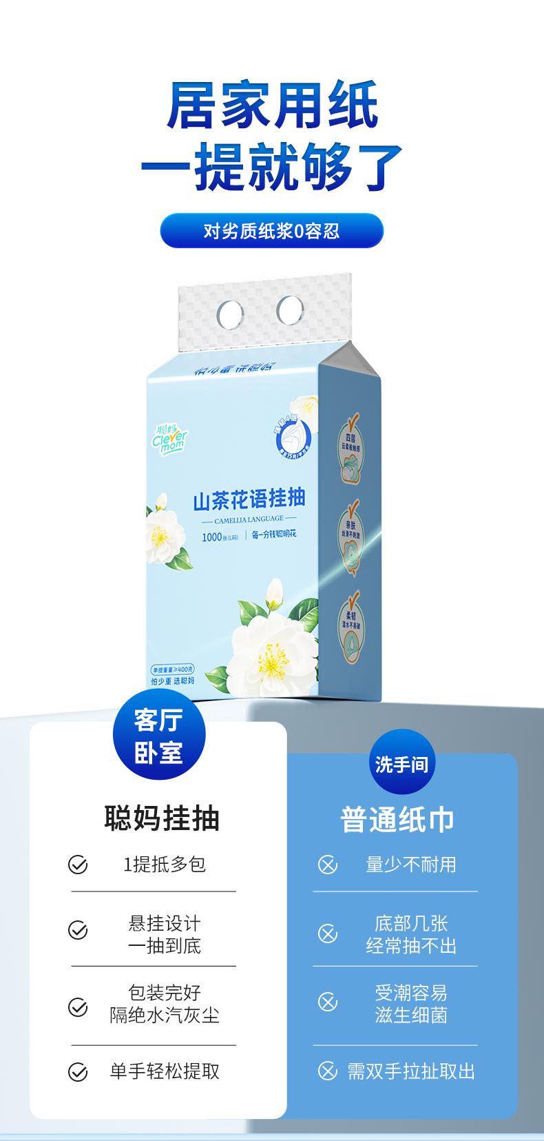 聪妈山茶花语系列悬挂式大包抽纸纸巾面巾纸餐巾纸卫生纸批发整箱*0