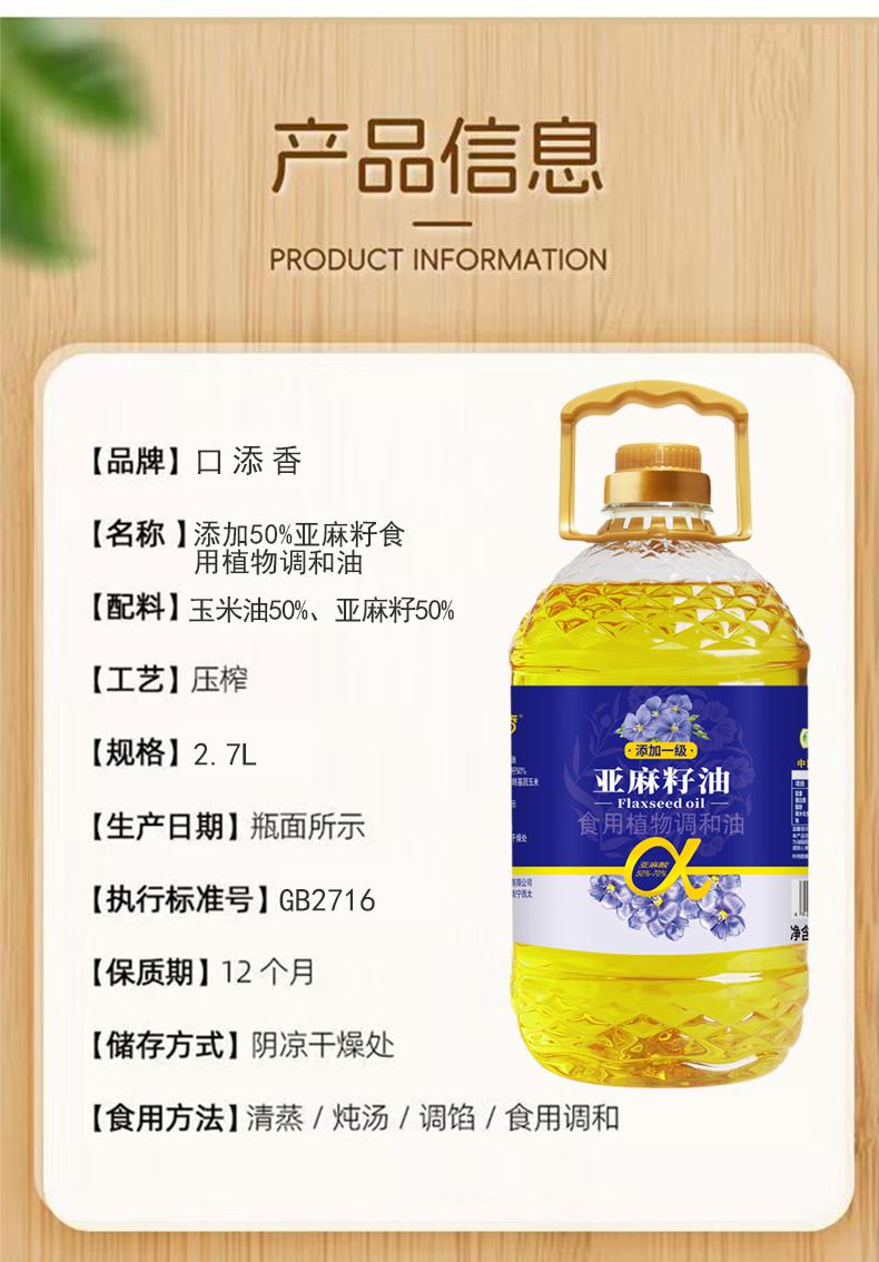 亚麻籽调和油压榨工艺营养家用炒菜油亚麻籽油2.7升一桶(亚麻籽调和油约5斤)*0