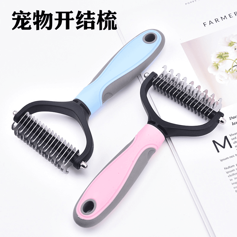 宠物通用开结梳狗狗梳毛脱毛梳双面按摩梳不锈钢猫梳子加宠物发饰*0