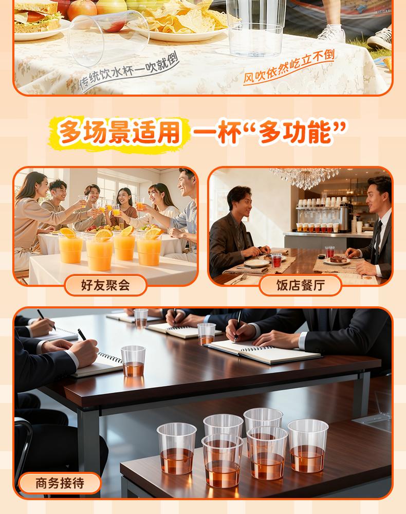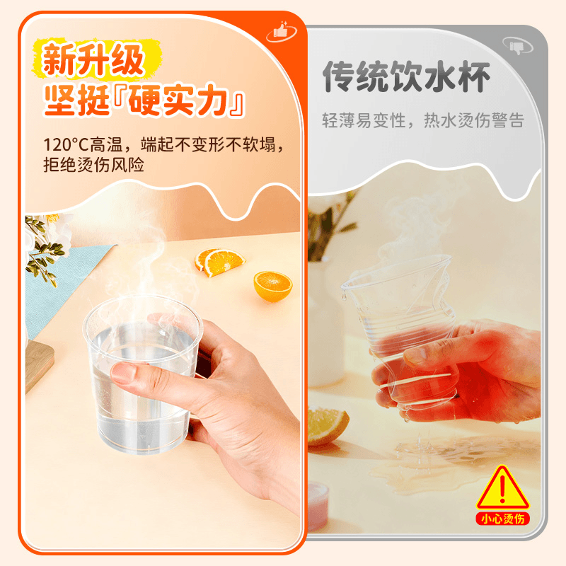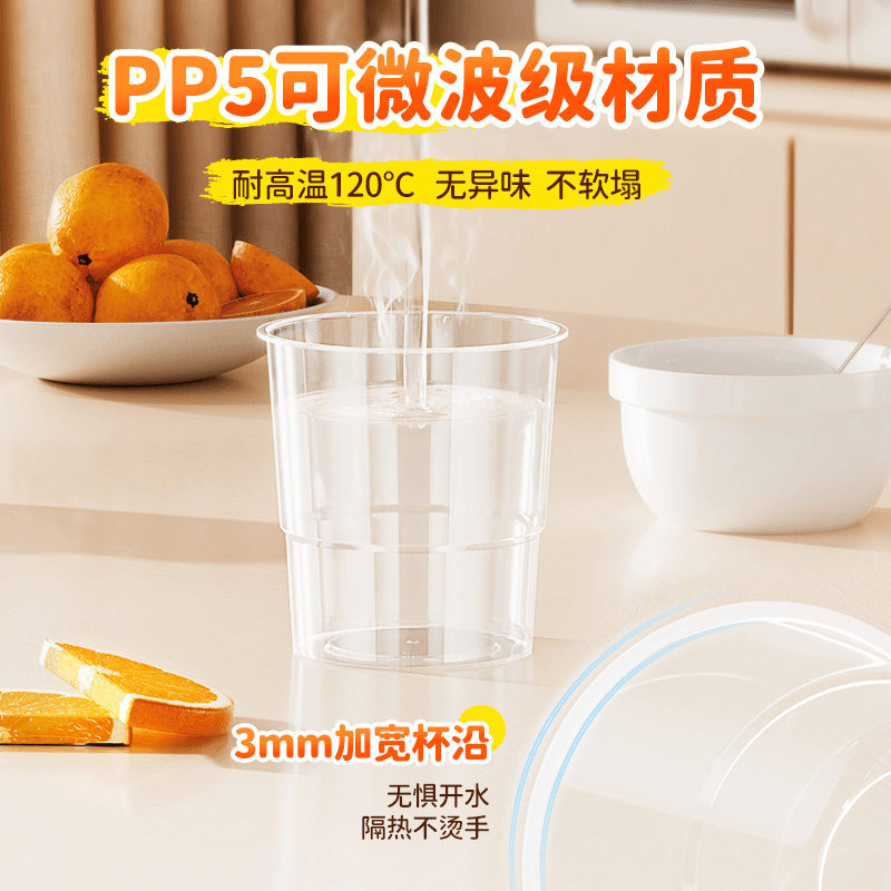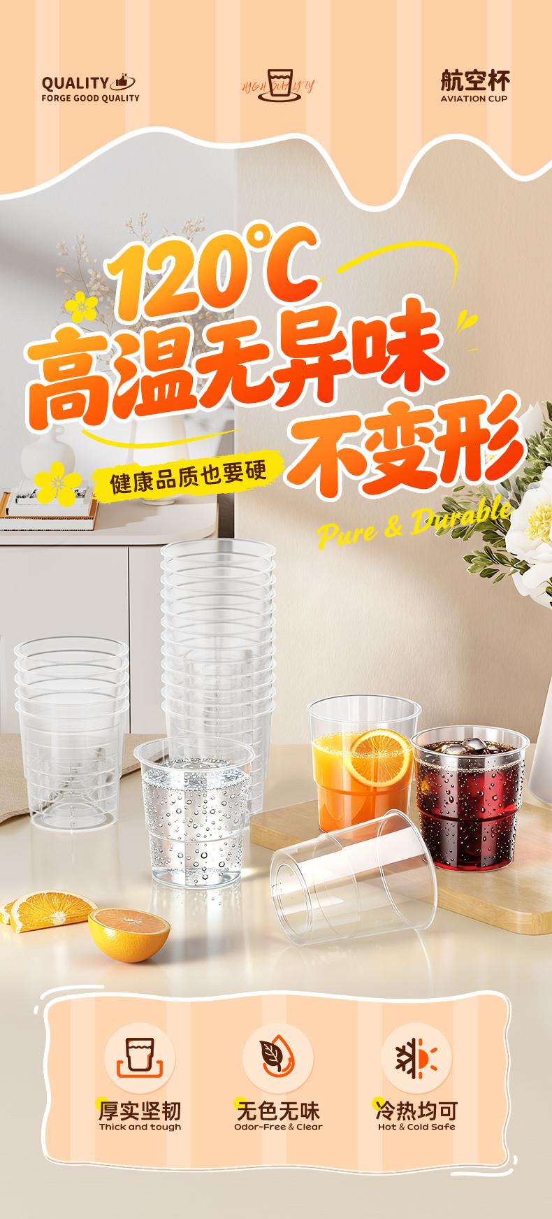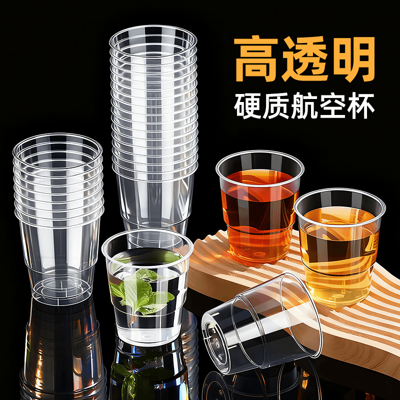 【50/100只装】一次性家用硬质透明航空杯加厚耐高温PP塑料杯子*0