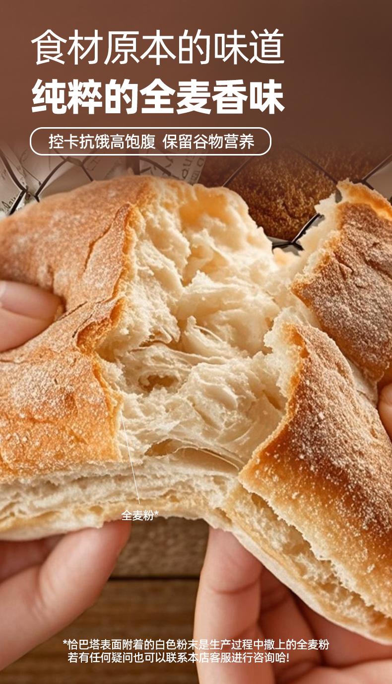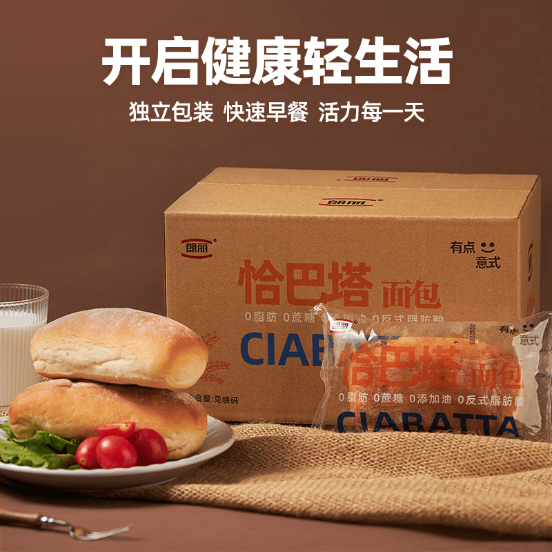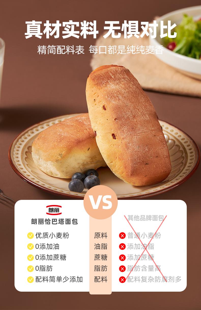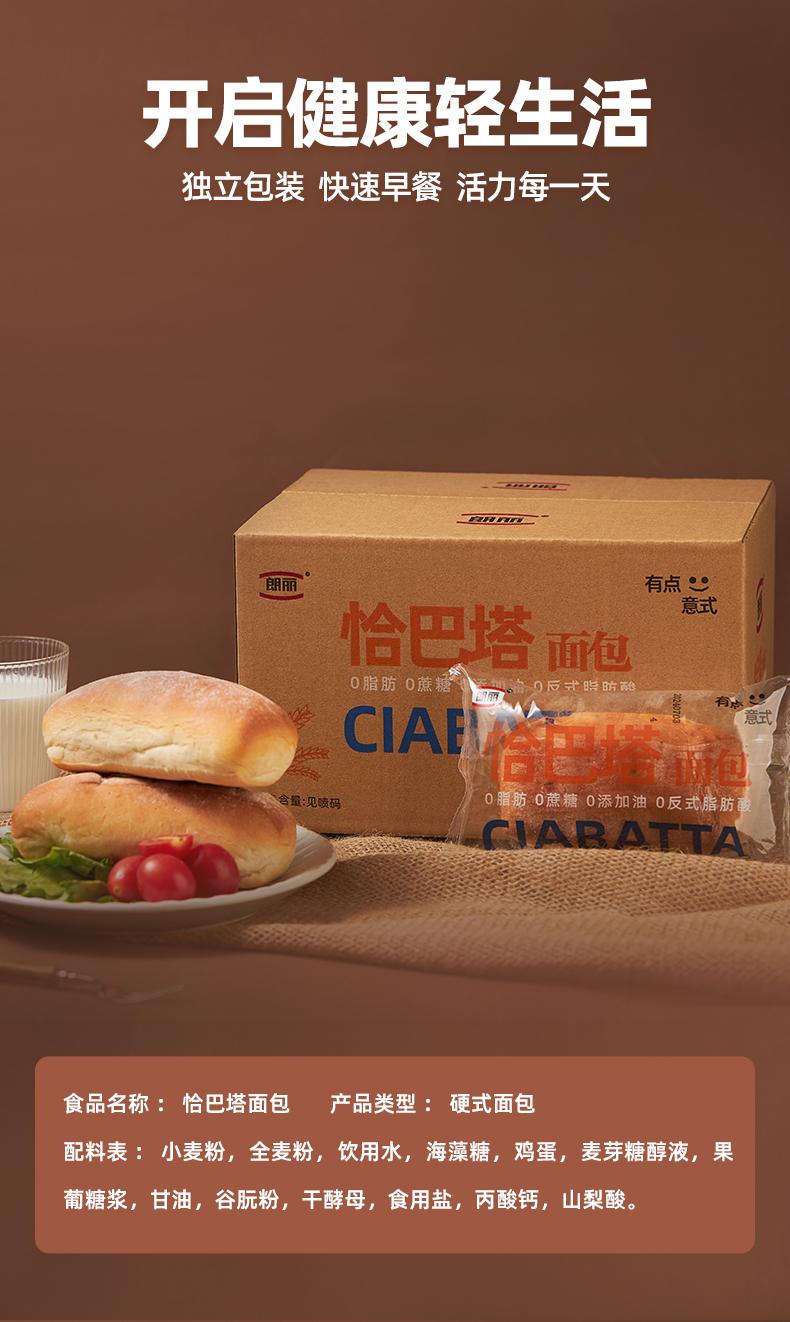 朗丽0脂恰巴塔 560克/箱/8包 全麦面包0蔗糖健身代餐健康粗粮早餐三明治面包胚