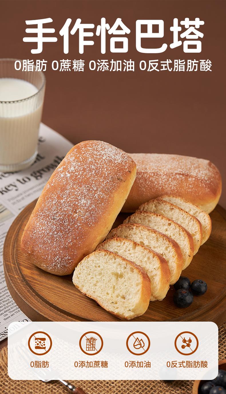 朗丽0脂恰巴塔 560克/箱/8包 全麦面包0蔗糖健身代餐健康粗粮早餐三明治面包胚0